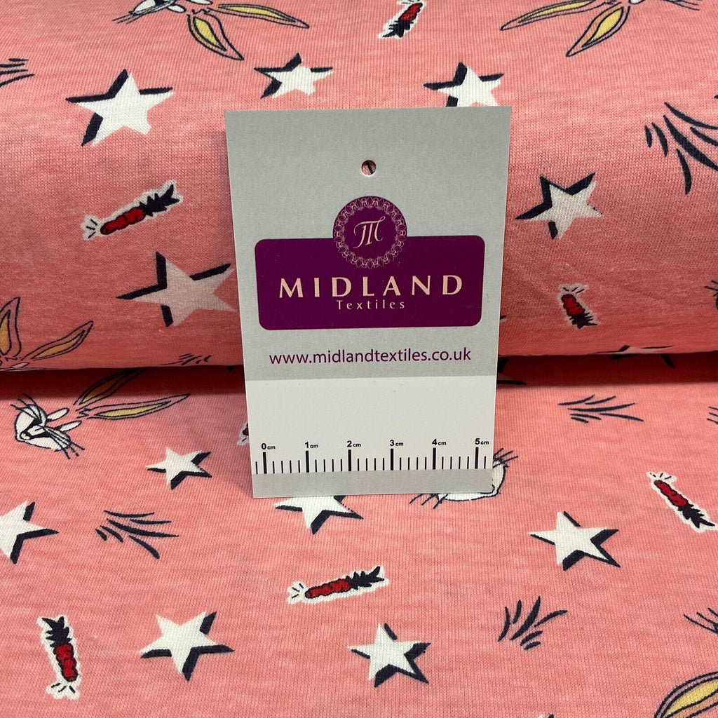 Children's Bunny Carrot Rabbit cotton stretch jersey novelty dress fabric M1715