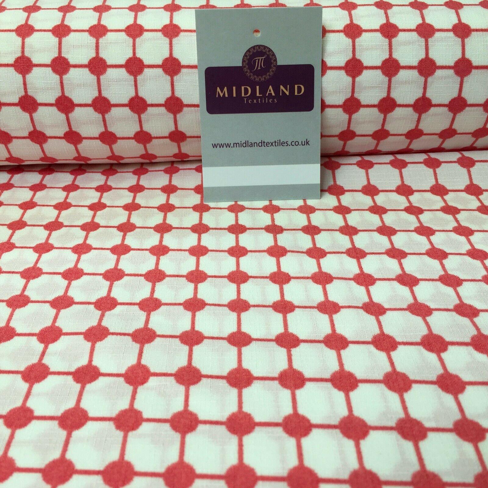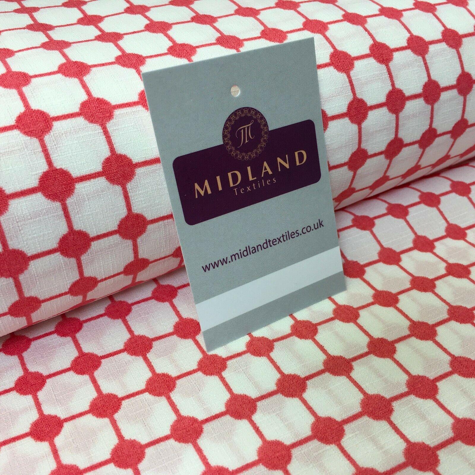 Coral & White Box Linen Effect Georgette Crepe Dress Fabric 147cm Wide MK1184-3