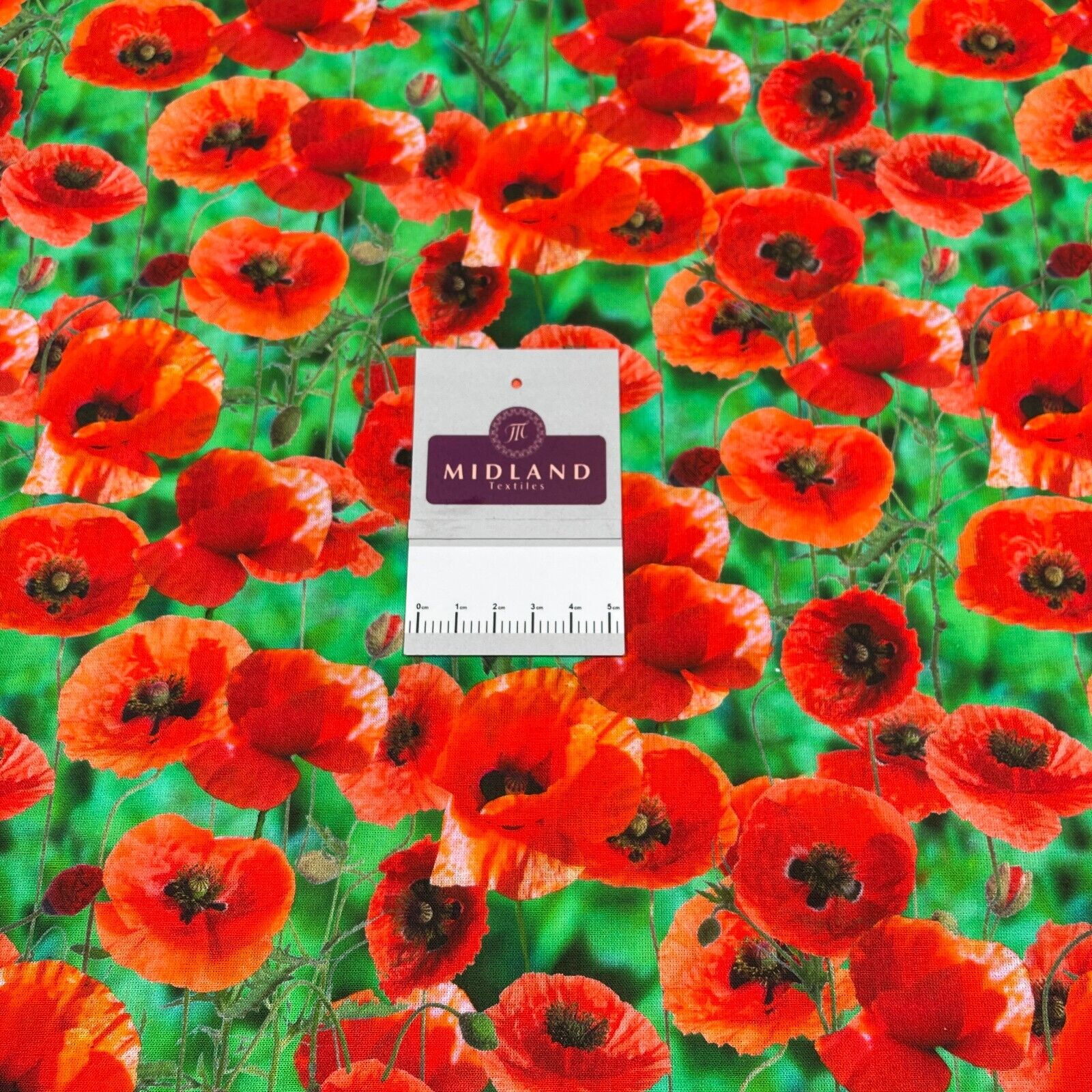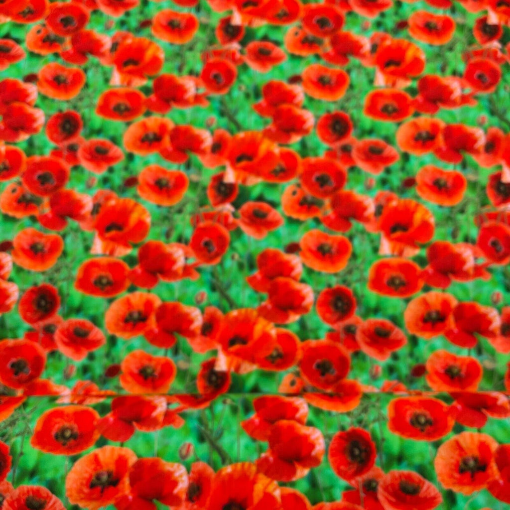 Emerald Green & Red Floral Poppy printed dress Cotton poplin fabric M1695