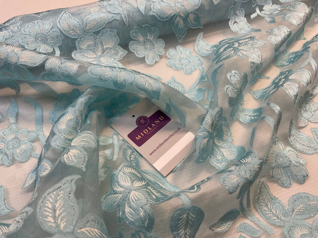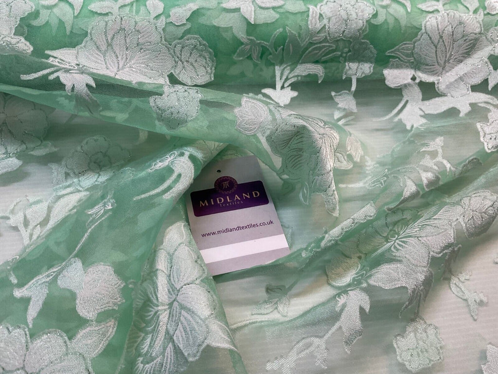 Elegant Organza silver laquered floral dress fabric 110cm wide M1680