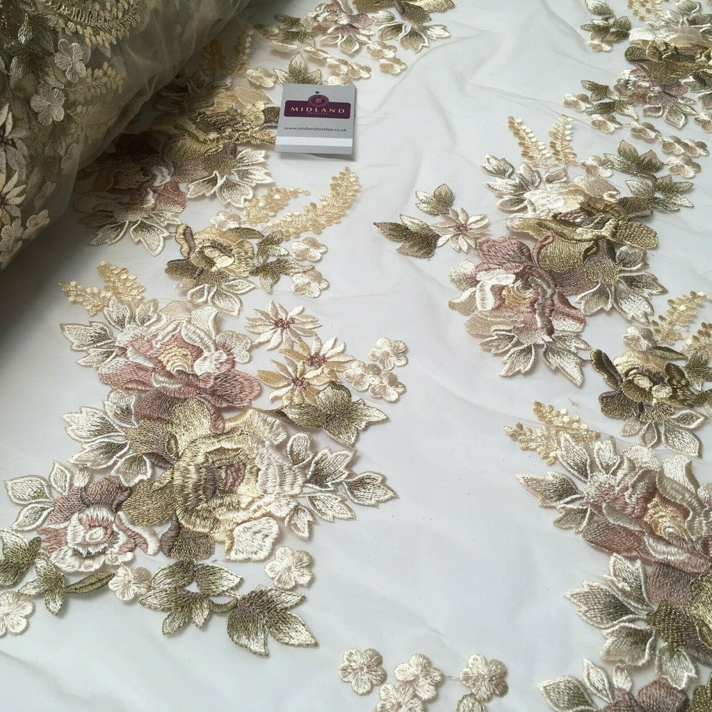 Embroidered Cream Floral Net Border Bridal Dress Fabric 139 cm Wide MV1068-1 Sample Size approx 10cm x 10cm Width: 139 cm Wide Textile finishing: Feel/Hanging: hangs well Certificates: NoneIf you have any questions/problems please do not hesitate to contact usIf you require a sample, please select from the "length" option above. Please order a sample to avoid disappointment.A NOTE ABOUT COLORS: We put a great deal of effort into taking images which represent the colors as closely as possible however the appearance of colors will always vary slightly from one computer screen to another.