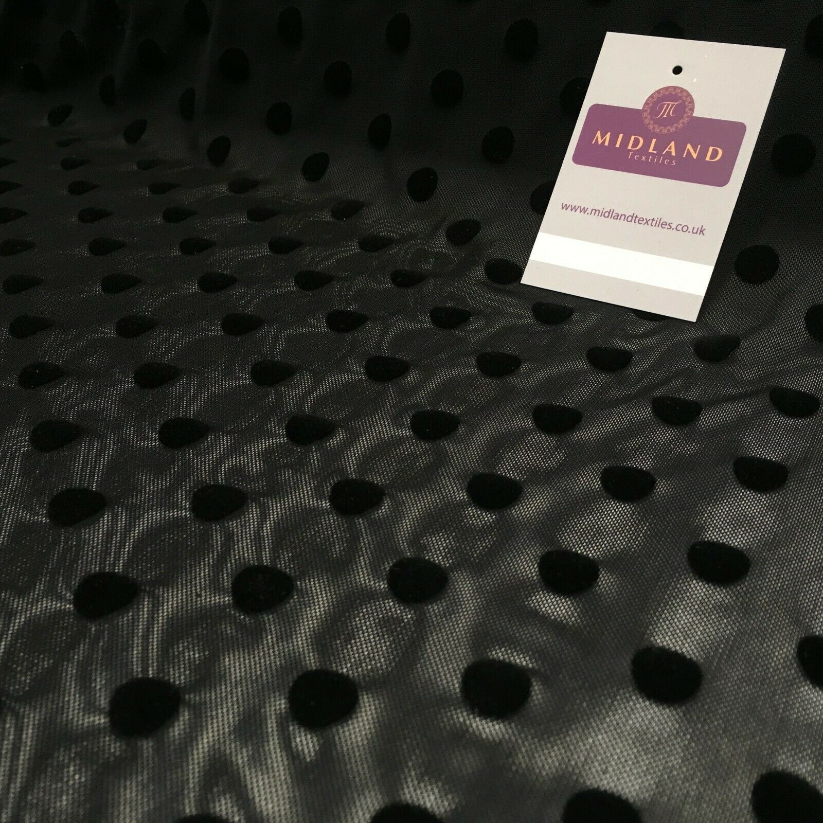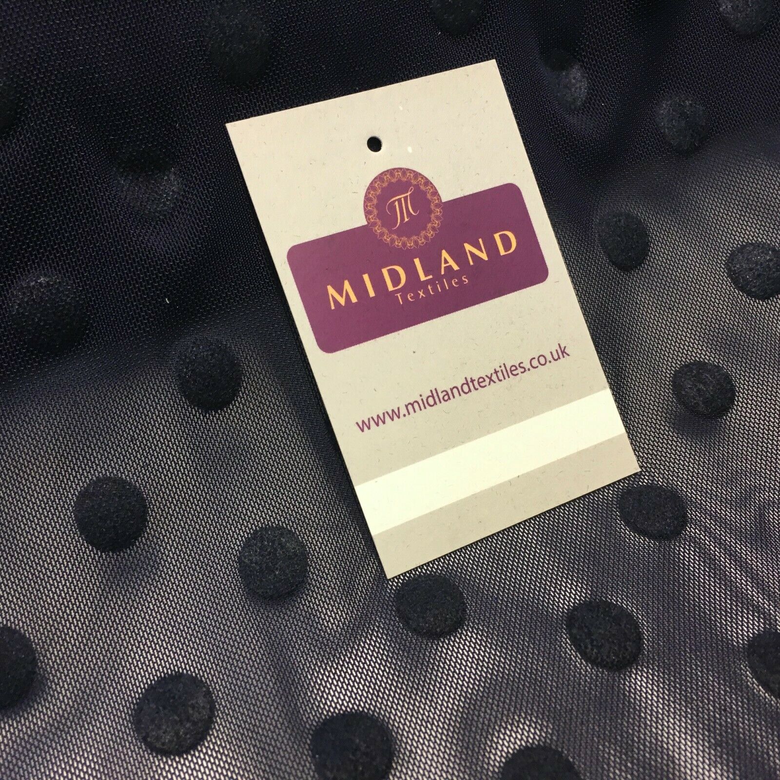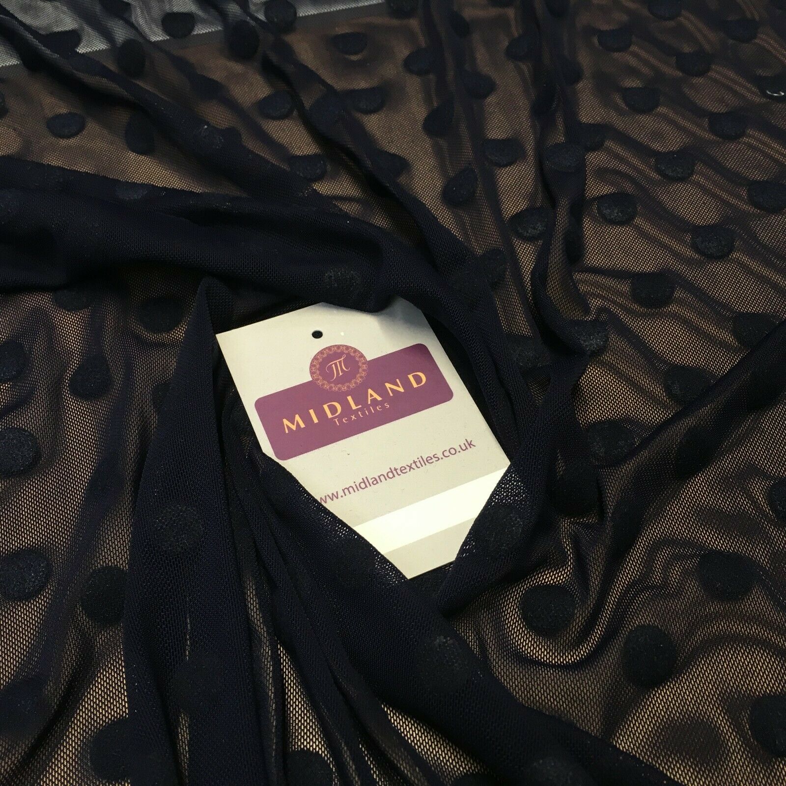 Midland Textiles LimitedItem Number M1148Description: Flock 10mm Polka Dot Power Mesh Stretch Dress Fabric 139cm Wide M1148 Mtex2 Colour: Width 55' inches - 139cmSample Size approx 10cm * 10cmWashing Instructions: HandwashRETURNS POLICY: Once cut and dispatched we cannot refund fabric orders, Please order a sample to avoid disappointment.If you have received a damaged or faulty item please contact us and we will do our best to resolve the problem as quickly as possible and without any further cost to yourself.