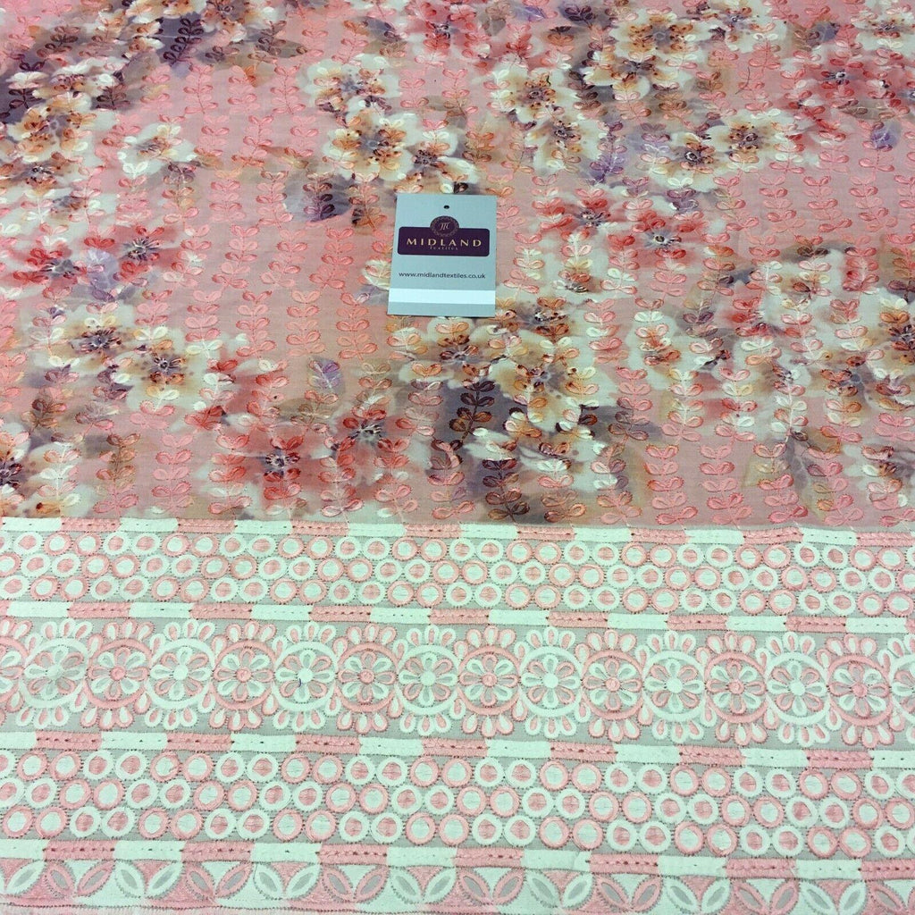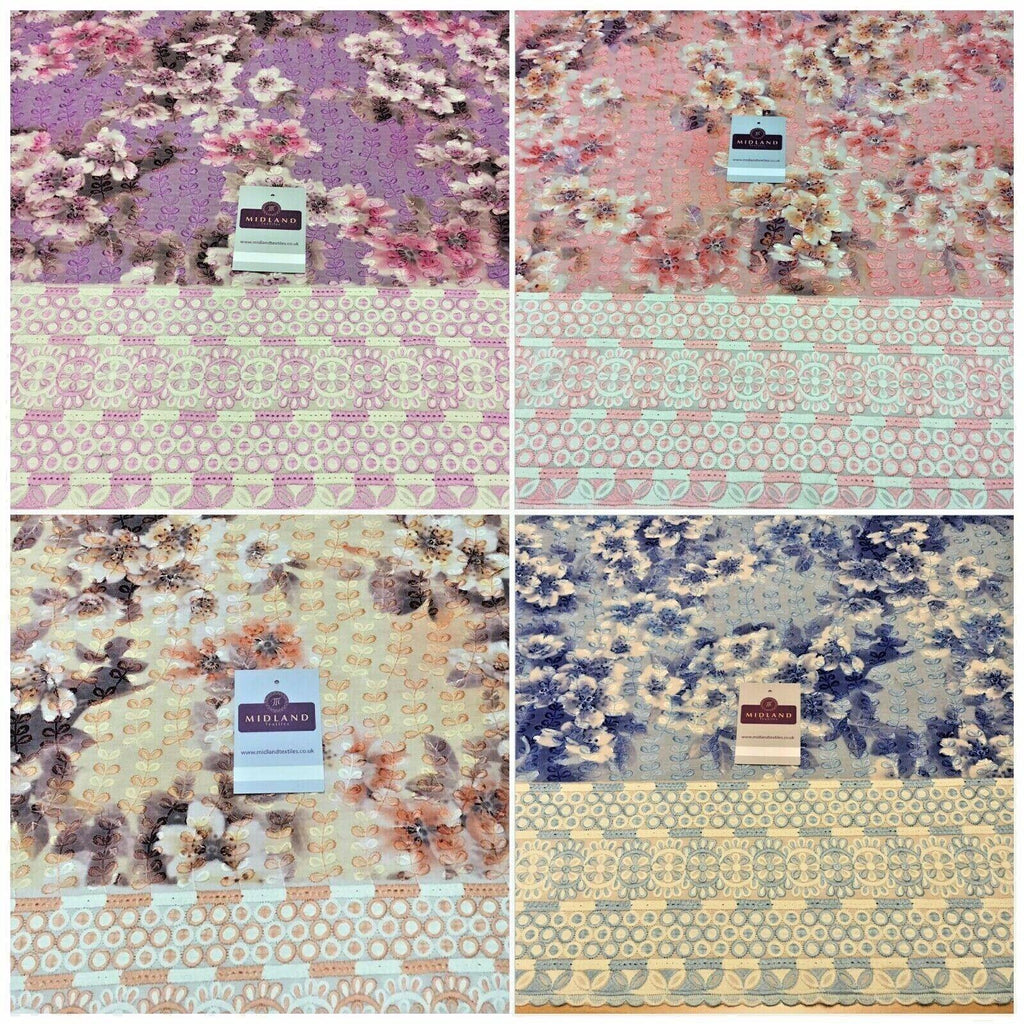 Midland Textiles LimitedItem Number M1198Description: Floral Border Embroidered Broderie Anglaise Dress Fabric 139 cm M1198 Mtex4 Colour: Width 139 cmSample Size approx 10cm * 10cmWashing Instructions: HandwashRETURNS POLICY: Once cut and despatched we cannot refund fabric orders, Please order a sample to avoid disappointment.If you have received a damaged or faulty item please contact us and we will do our best to resolve the problem as quickly as possible and without any further cost to yourself.