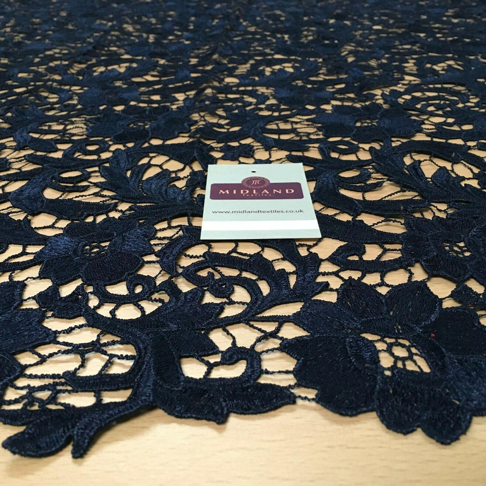 Floral Wedding Guipure double border chemical lace dress fabric 130cm MA1057 Sample Size approx 10cm x 10cm Width: 130cm Wide Textile finishing: Feel/Hanging: hangs well Certificates: NoneIf you have any questions/problems please do not hesitate to contact usIf you require a sample, please select from the "length" option above. Please order a sample to avoid disappointment.A NOTE ABOUT COLORS: We put a great deal of effort into taking images which represent the colors as closely as possible however the appearance of colors will always vary slightly from one computer screen to another.