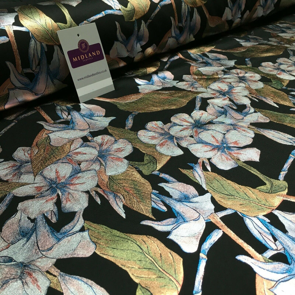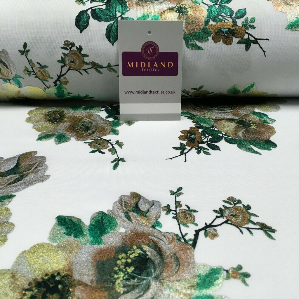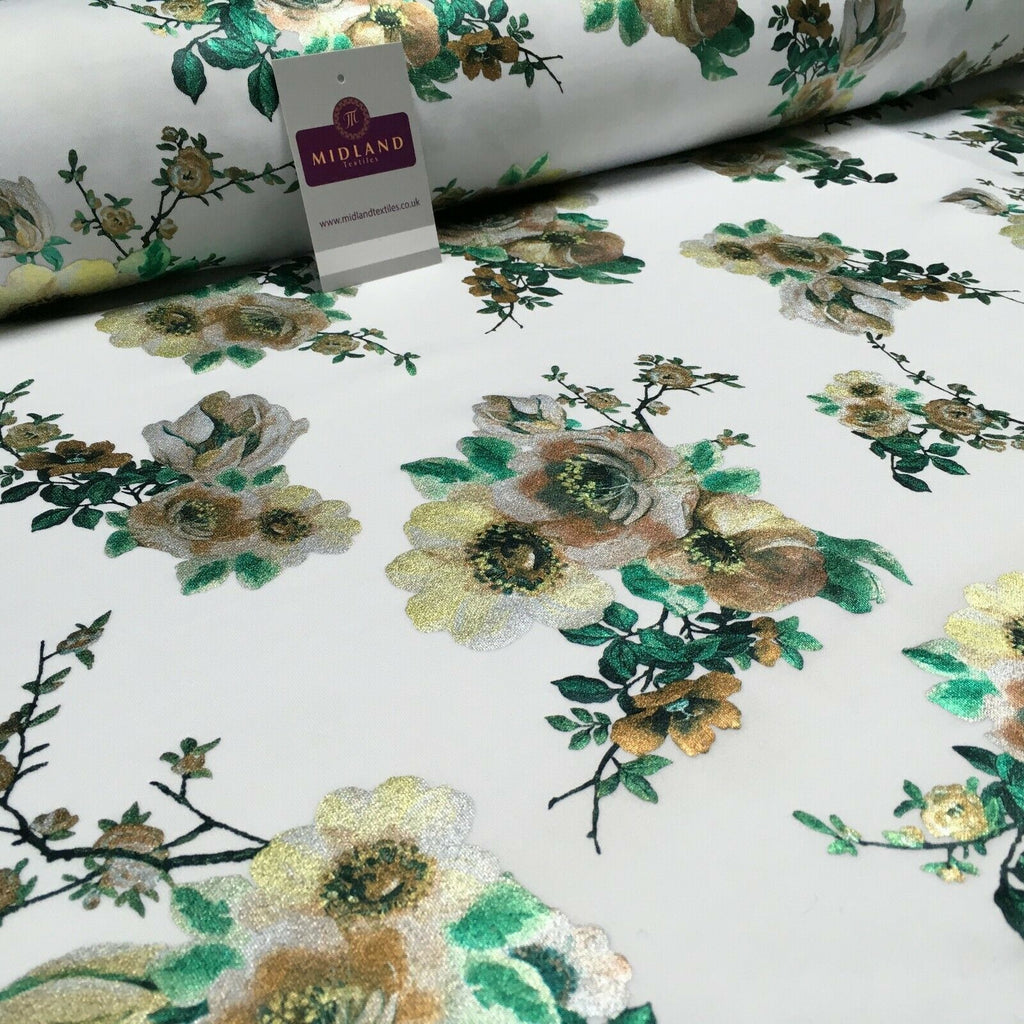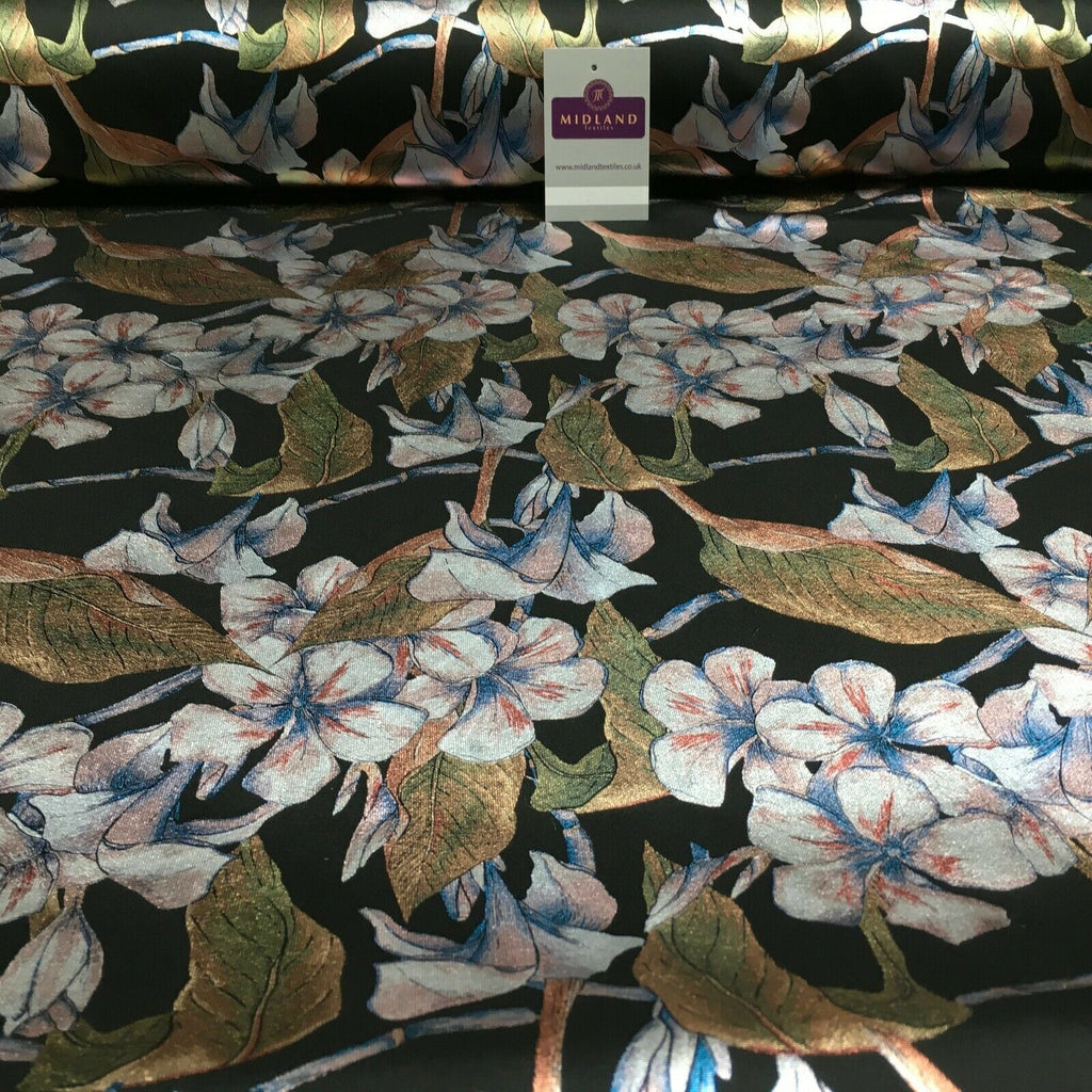 Description: Foil Floral Printed Scuba Fabric 150cm MH1338