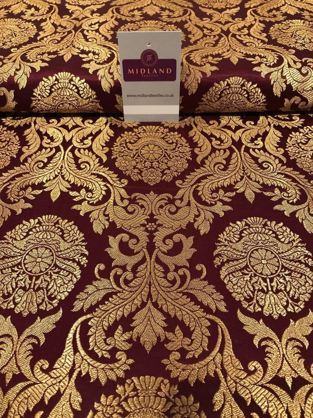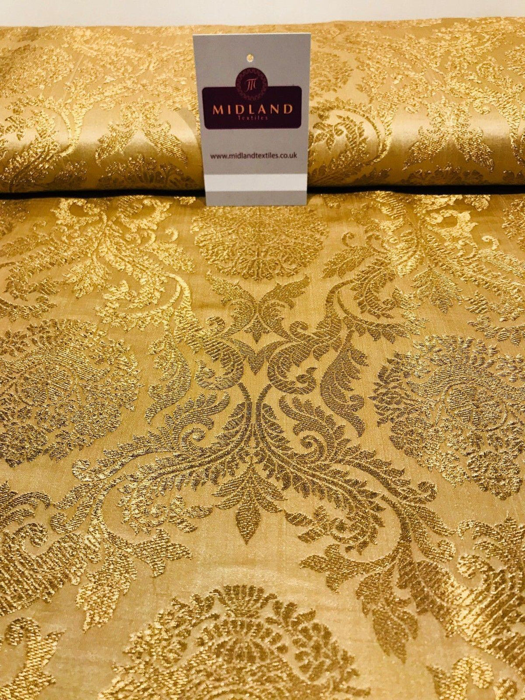 Gold Metallic Ornamental Indian Faux Silk Banarsi brocade Fabric 44" Wide M807