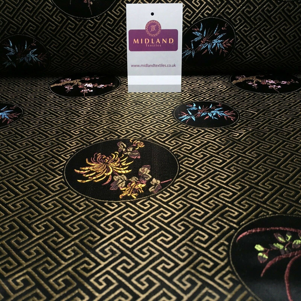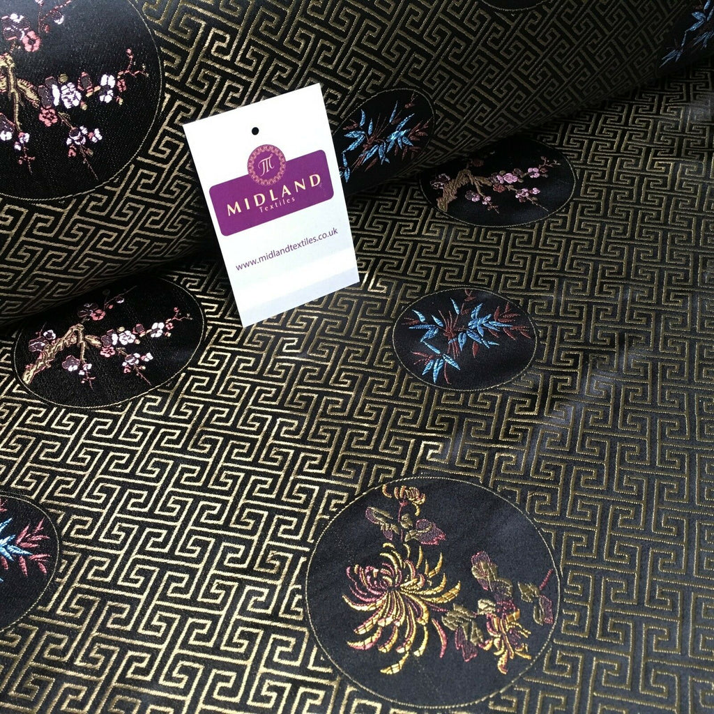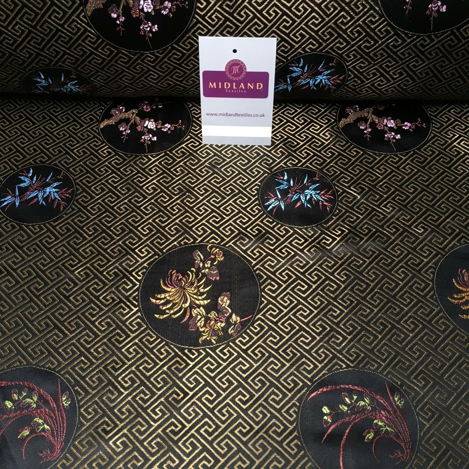Midland Textiles LimitedItem Number M663Description: Greek Key Chinese brocade Silky Smooth Satin fabric 45" M663 Mtex3 Colours: Black 2, Old Gold 3, Copper 4Gsm: Country of Origin: Made in ChinaContents: Fabric Weight: Medium/Heavy, Width 44'' inches - 111cmSample Size approx 10cm * 10cmWashing Instructions: HandwashRETURNS POLICY: Once cut and despatched we cannot refund fabric orders, Please order a sample to avoid disappointment.If you have received a damaged or faulty item please contact us and we will do our best to resolve the problem as quickly as possible and without any further cost to yourself.