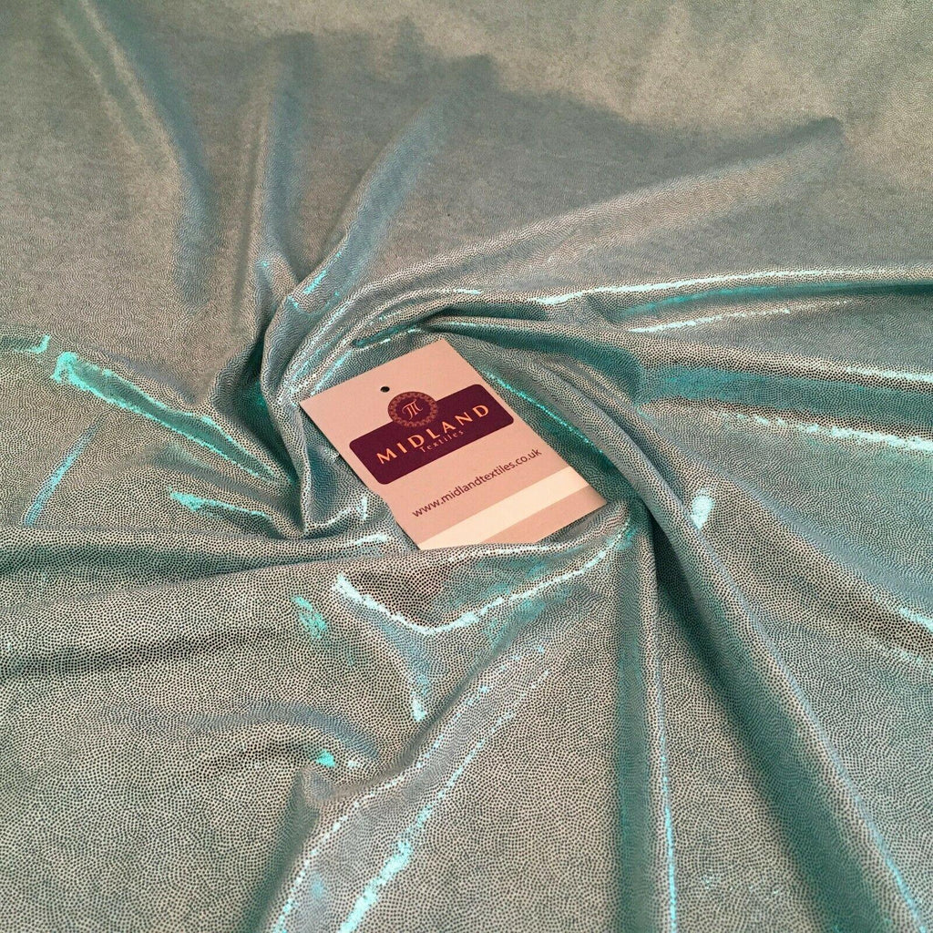 Midland Textiles LimitedItem Number MU1273Description: Holographic Spandex Jersey Shimmer Foil Stretch Print Dress Fabric 150 cm MU1273Width 150 cmSample Size approx 10cm * 10cmWashing Instructions: HandwashRETURNS POLICY: Once cut and despatched we cannot refund fabric orders, Please order a sample to avoid disappointment.If you have received a damaged or faulty item please contact us and we will do our best to resolve the problem as quickly as possible and without any further cost to yourself.