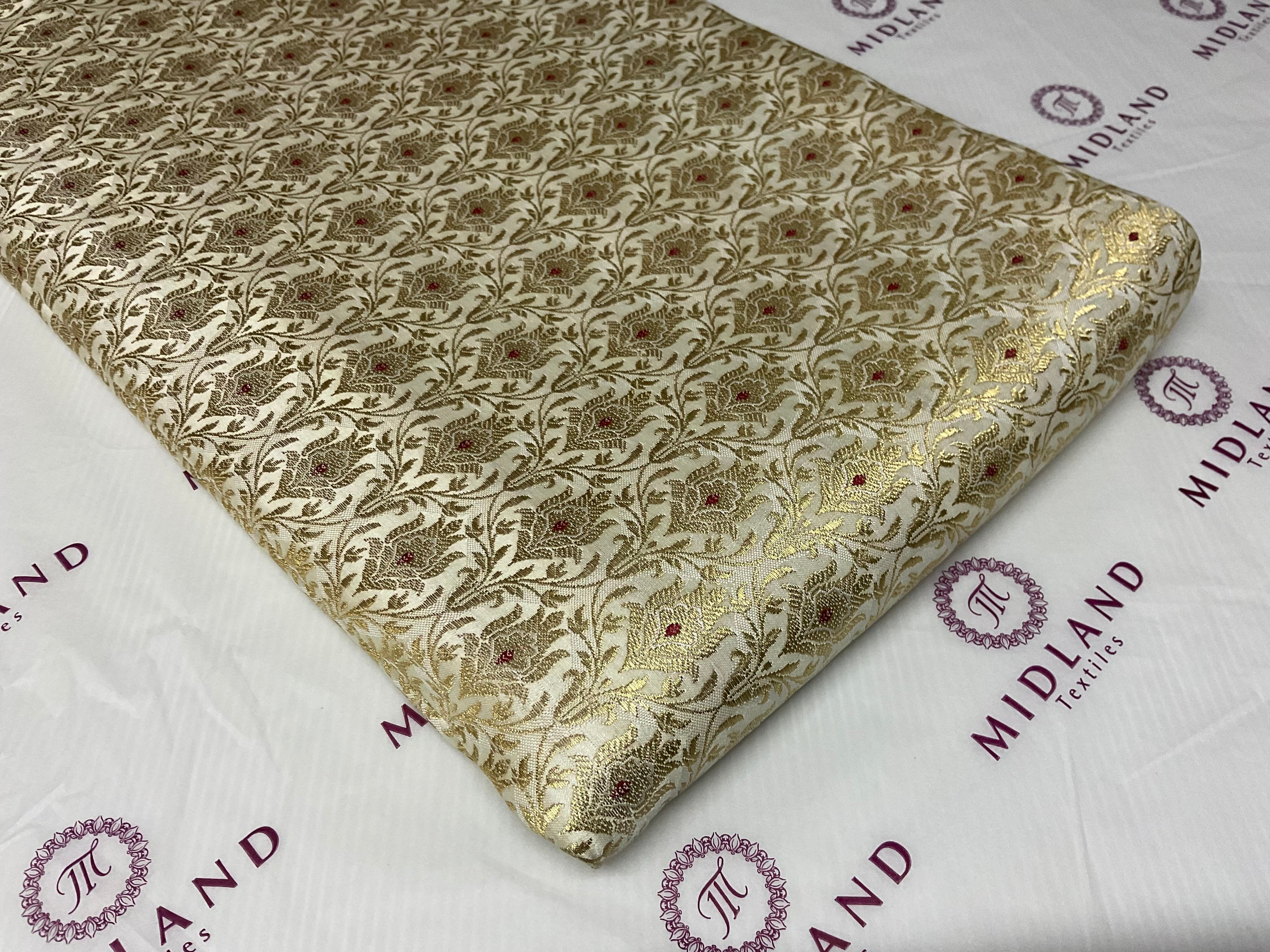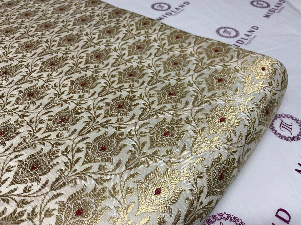 This exquisite floral Banarasi brocade fabric is the perfect choice for creating luxurious garments, accessories, and home décor projects. The fabric is 45 inches wide and features a beautiful, intricate design in rich colours. The brocade is made with high-quality materials and is sure to last for years to come.