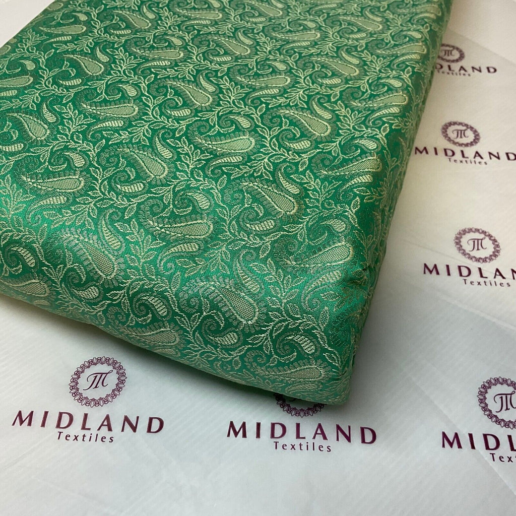 This exquisite paisley Banarasi brocade fabric is the perfect choice for creating luxurious garments, accessories, and home décor projects. The fabric is 45 inches wide and features a beautiful, intricate design in rich colors. The brocade is made with high-quality materials and is sure to last for years to come.