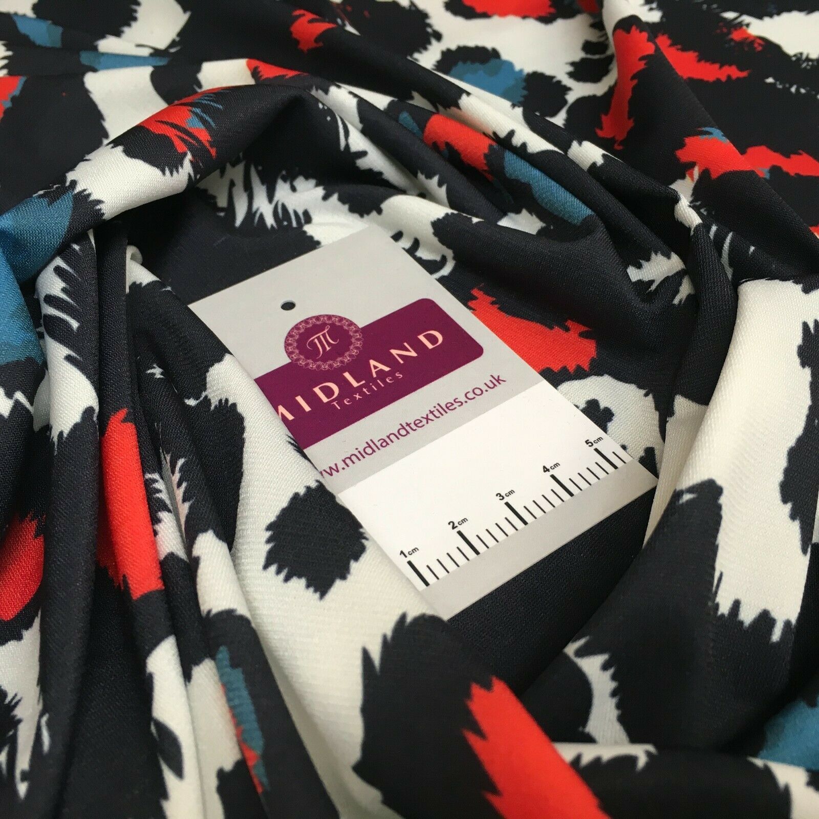 Description: Ivory Animal Abstract 2 way jersey stretch dress fabric M1523