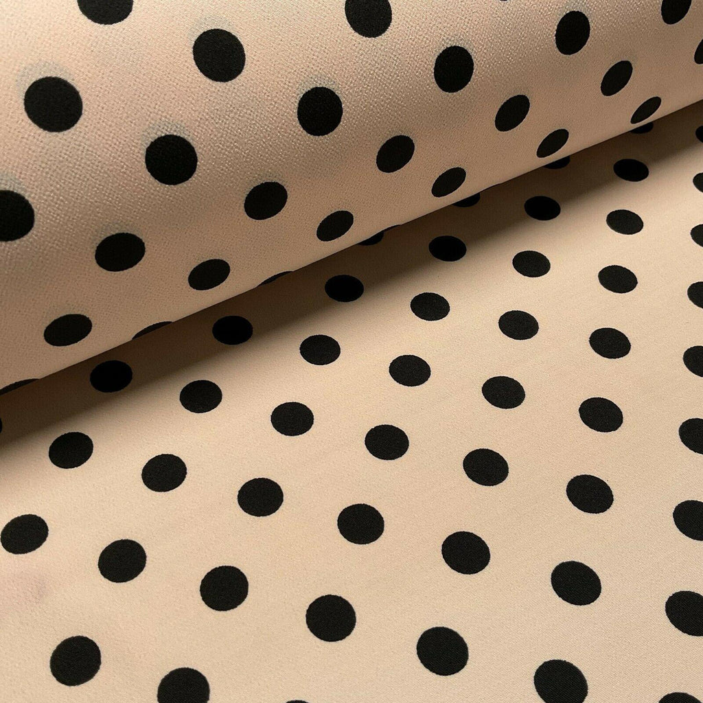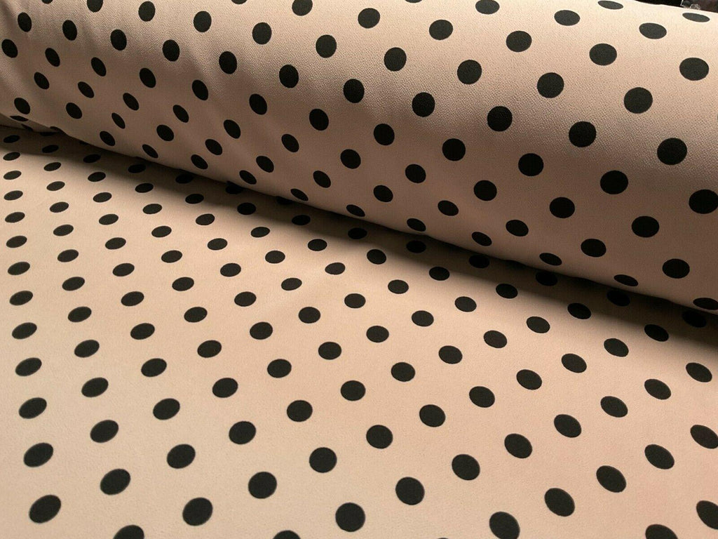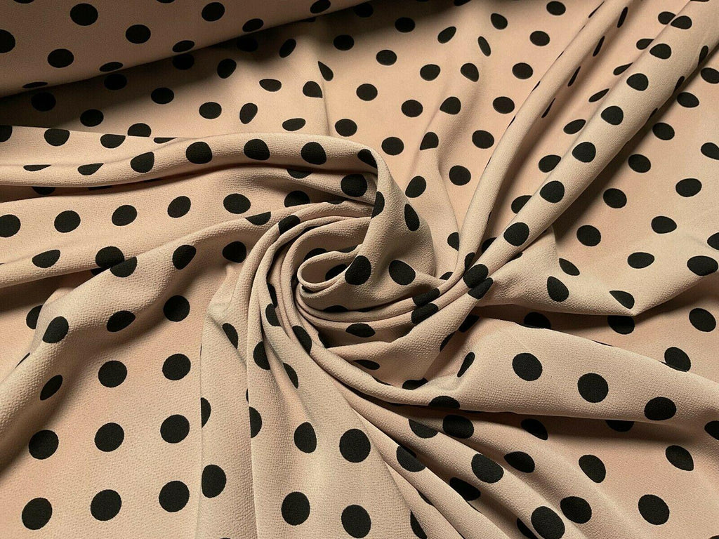 This gorgeous Koshibo crepe de Chine polka dot spot printed dress fabric with a width of 147cm is a perfect choice for creating a variety of stylish garments. The soft and drapey crepe de Chine fabric is adorned with polka dot spots making it appropriate for a wide range of occasions. Whether you're looking to create a chic cocktail dress, or a timeless maxi skirt, this fabric is sure to add a touch of sophistication to your wardrobe.