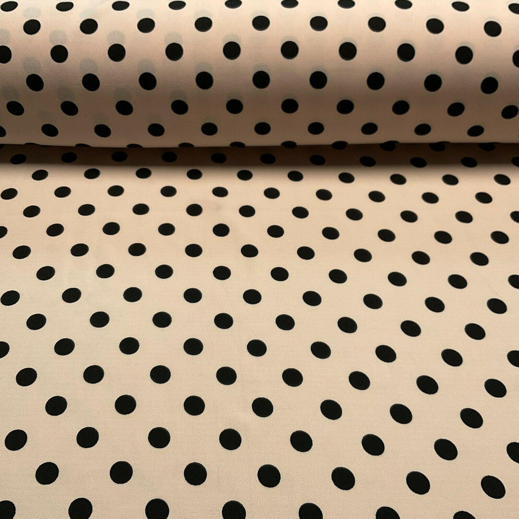 Usage: This versatile Koshibo crepe de Chine polka dot spot printed dress fabric can be used for a variety of projects, including: