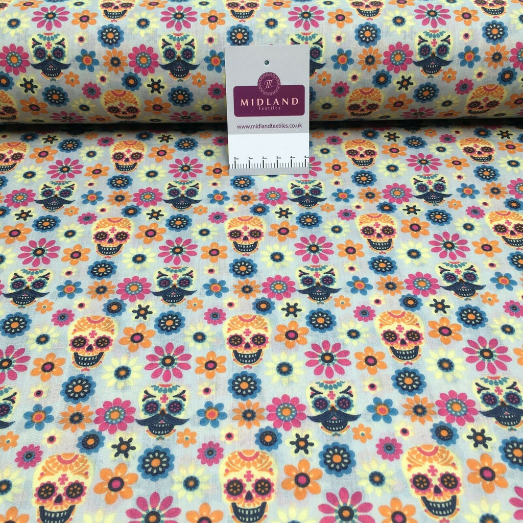 Mexican Halloween day of the dead craft mask poly cotton Fabric M1448 Mtex