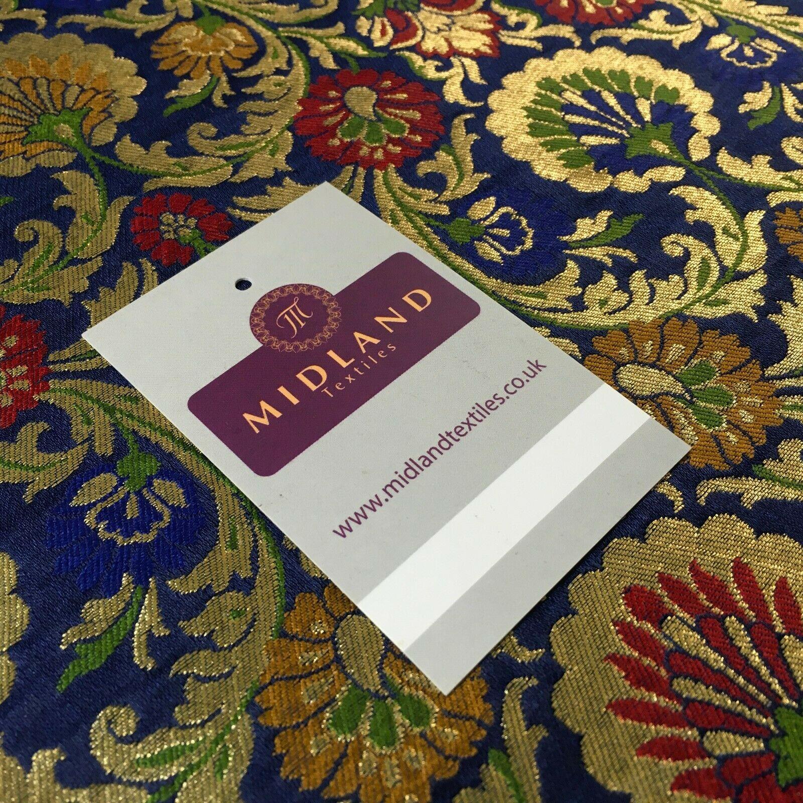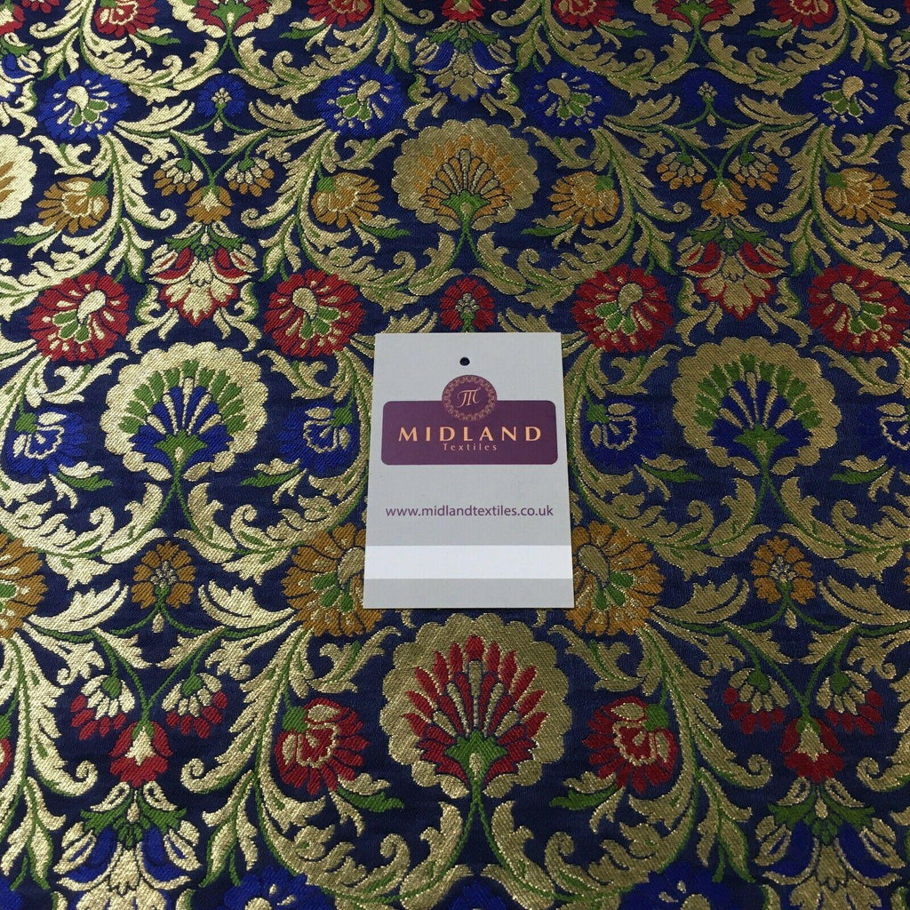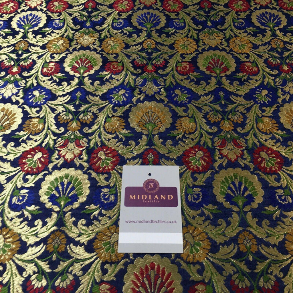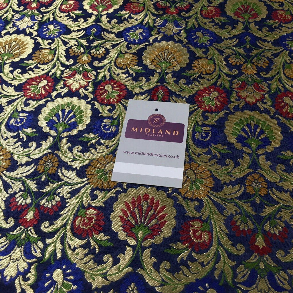 Description: Navy Blue Floral Faux Silk Banarsi Brocade Fabric 110cm MP1328