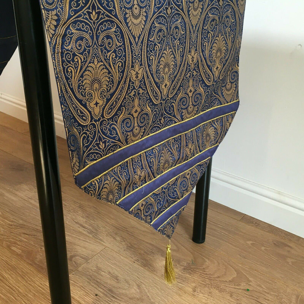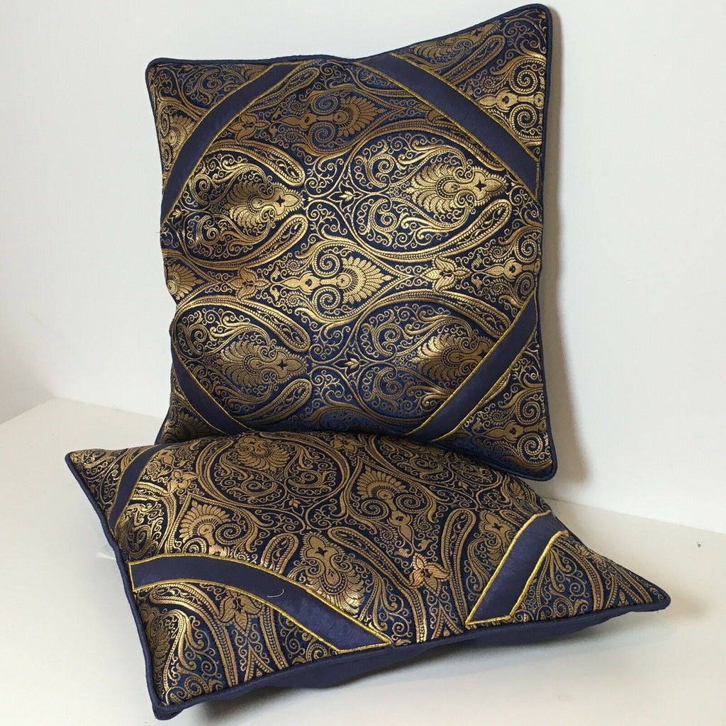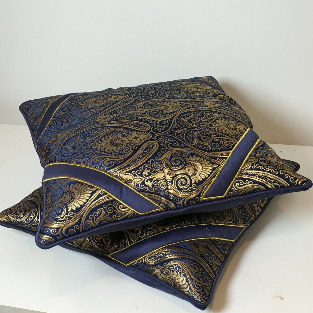 Navy Blue Indian Ornamental banarsi raw silk Cushion Cover Table Runner M1386