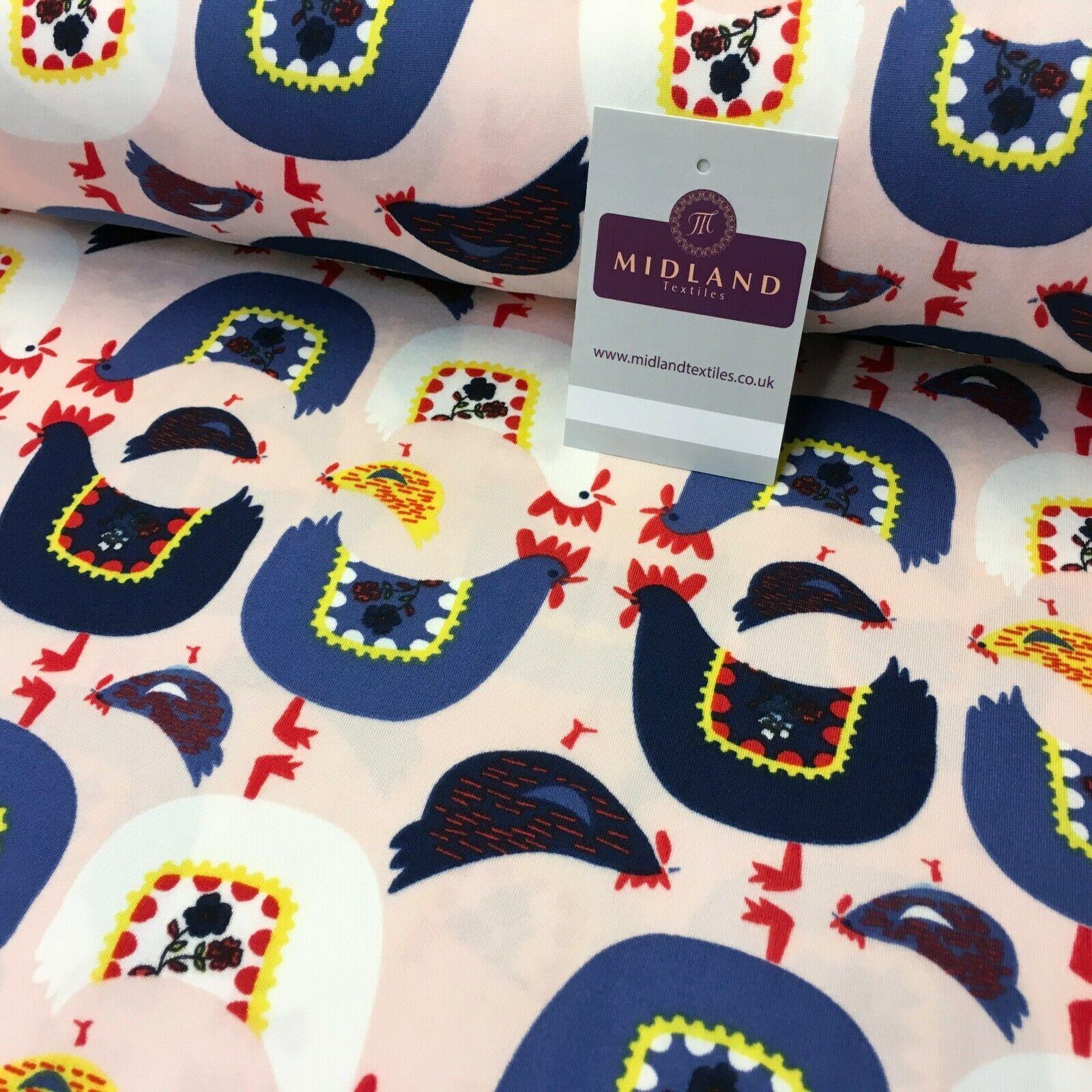Pale Pink Hen Rooster Printed Brushed Jersey Dress fabric 150cm Wide MK1106-4Sample Size approx 10cm x 10cmFeel/Hanging: hangs wellGsm: 165GsmHand wash Only100% PolyesterCertificates: NoneIf you have any questions/problems please do not hesitate to contact usIf you require a sample, please select from the "length" option above. Please order a sample to avoid disappointment.A NOTE ABOUT COLOURS: We put a great deal of effort into taking images which represent the colours as closely as possible however the appearance of colours will always vary slightly from one computer screen to another.