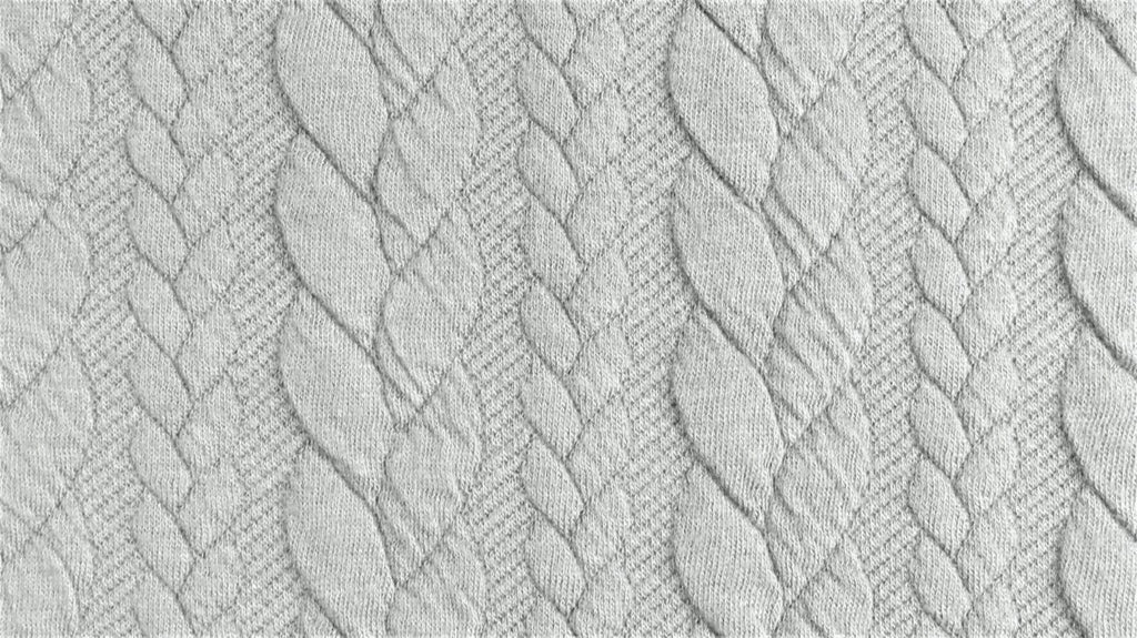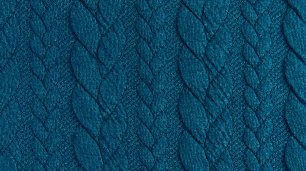 Plain Cable Knit Jersey ideal for jumpers cardigans sweaters Fabric M1659This gorgeous thick & soft jersey fabric features a cable knit design and would be perfect for jumpers, sweaters, cardigans and warm dresses.STANDARD 100 by OEKO-TEX is an independent product label for all types of textiles tested for harmful substances. Weight: 330 gsmComposition:81% polyester 3% Elastane 16% RayonWidth:150cm WideStretch across width: 30%Stretch across length: 25%Sold By the meter. Multiple orders of the same fabric will be sent as a continuous piece.Sample Size: 10cm x 10cm ApproxIf you require a sample, please select from the "length" option above. Please order a sample to avoid disappointment.Washing Instructions:Machine wash at 30 degrees.Do not bleach Iron on a low heat. No tumble dry. We recommend testing a small piece first.A NOTE ABOUT COLORS: We put a great deal of effort into taking images which represent the colours as closely as possible, however the appearance of colours will always vary slightly from one computer screen to another.