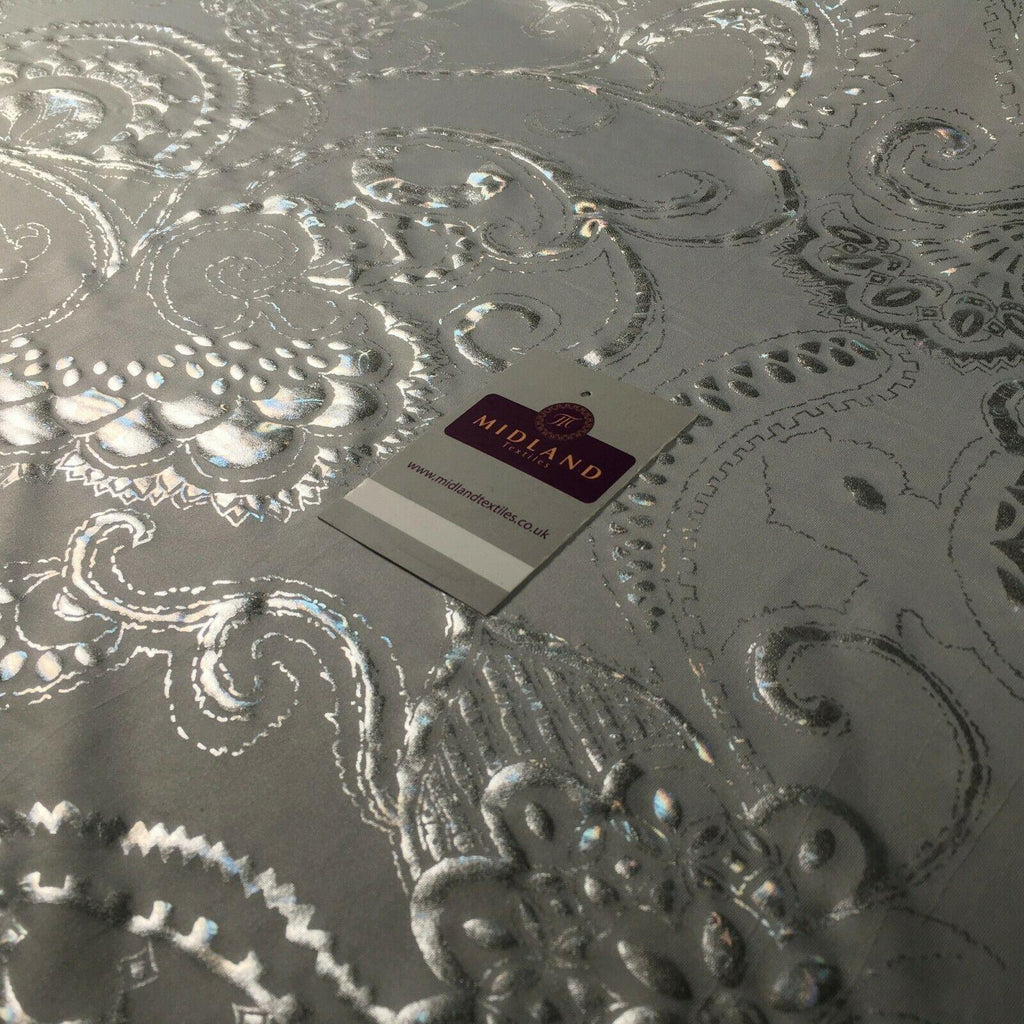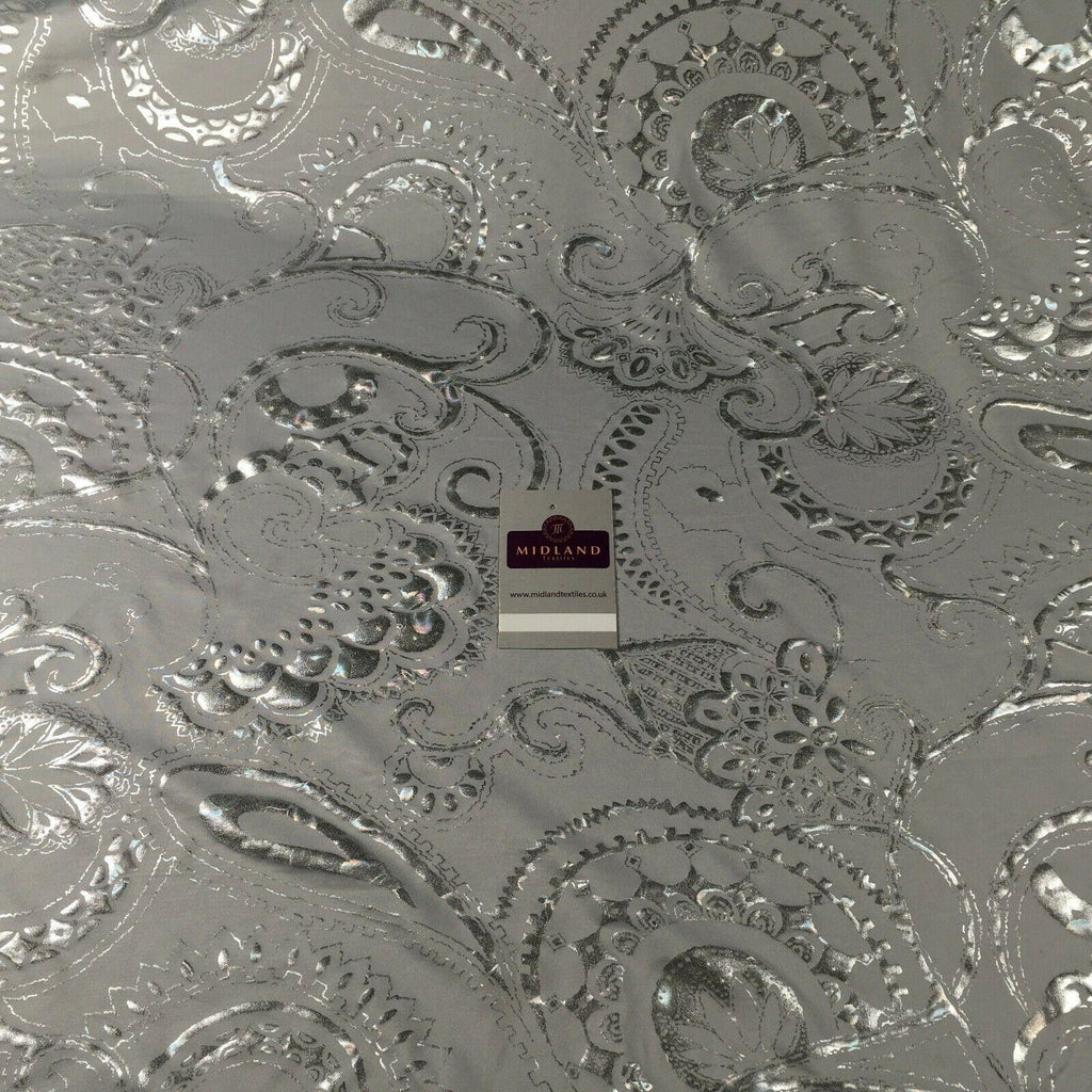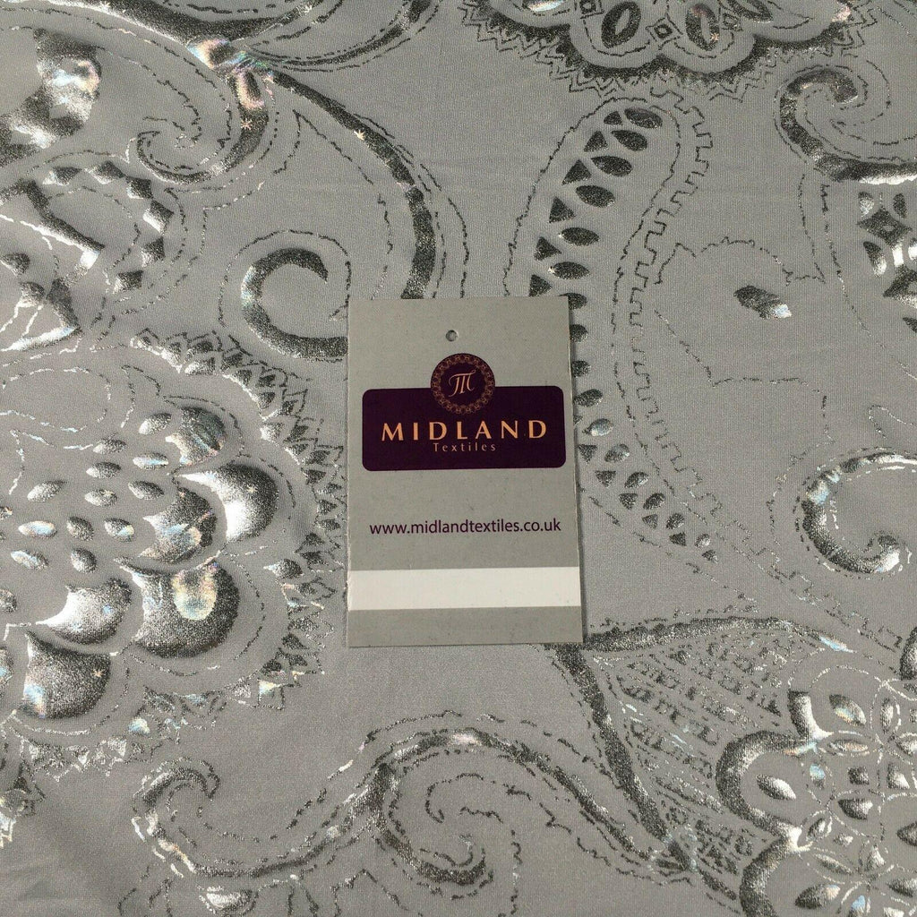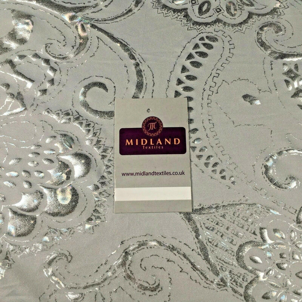 Midland Textiles LimitedItem Number MU13001Description: Silver White Floral Spandex Jersey Foil Stretch Dress Fabric 150cm MU1301Width 150 cmSample Size approx 10cm * 10cmWashing Instructions: HandwashRETURNS POLICY: Once cut and despatched we cannot refund fabric orders, Please order a sample to avoid disappointment.If you have received a damaged or faulty item please contact us and we will do our best to resolve the problem as quickly as possible and without any further cost to yourself.