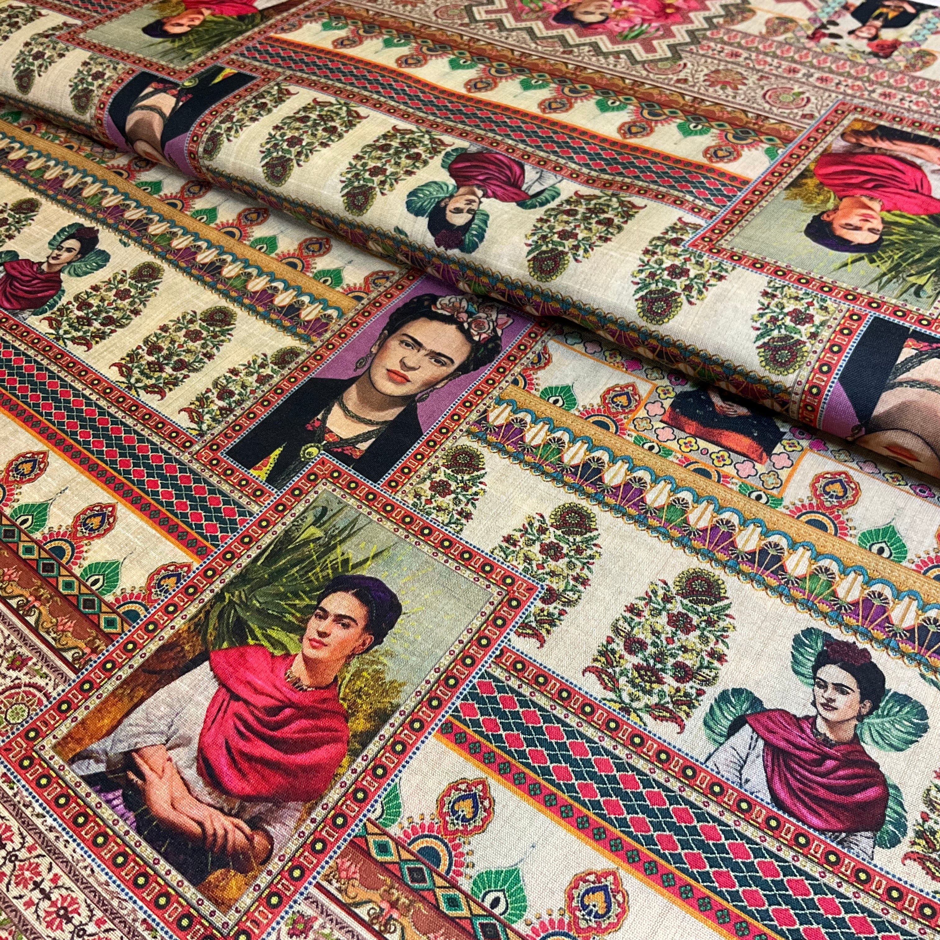 Imagine the gentle rustle of this fabric as it catches the light, its subtle sheen elevating any garment or interior piece. The warm beige palette serves as a sophisticated neutral that pairs beautifully with both bold and muted colour schemes, while the vintage Mexican-inspired pattern adds character without overwhelming your design vision.