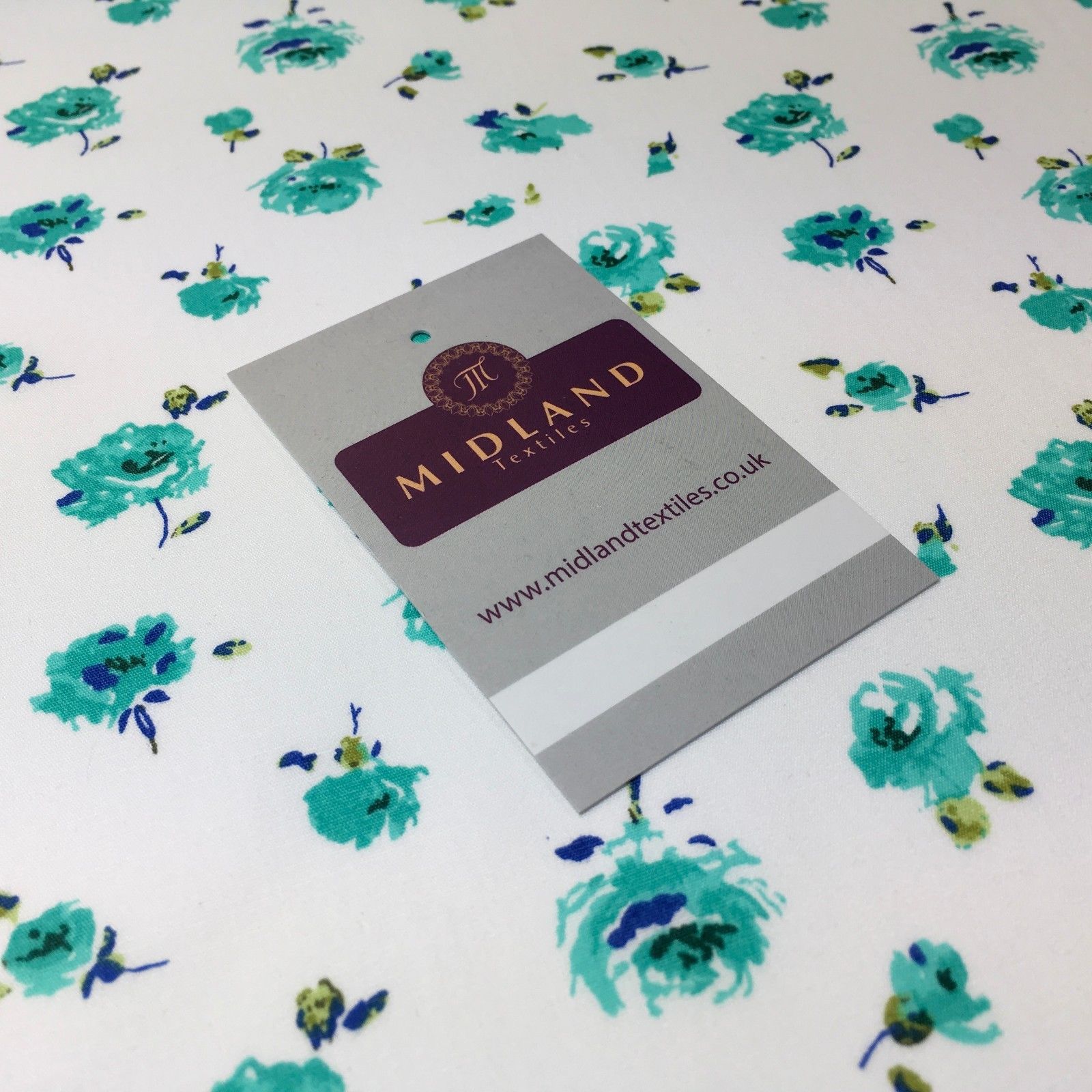 Bring timeless charm to your sewing projects with this beautiful vintage floral print on crisp white cotton. This 100% cotton fabric features delicate floral patterns in soft jade, pink, and blue tones, perfect for creating romantic garments, quilts, and home décor with a nostalgic, cottage-core aesthetic.