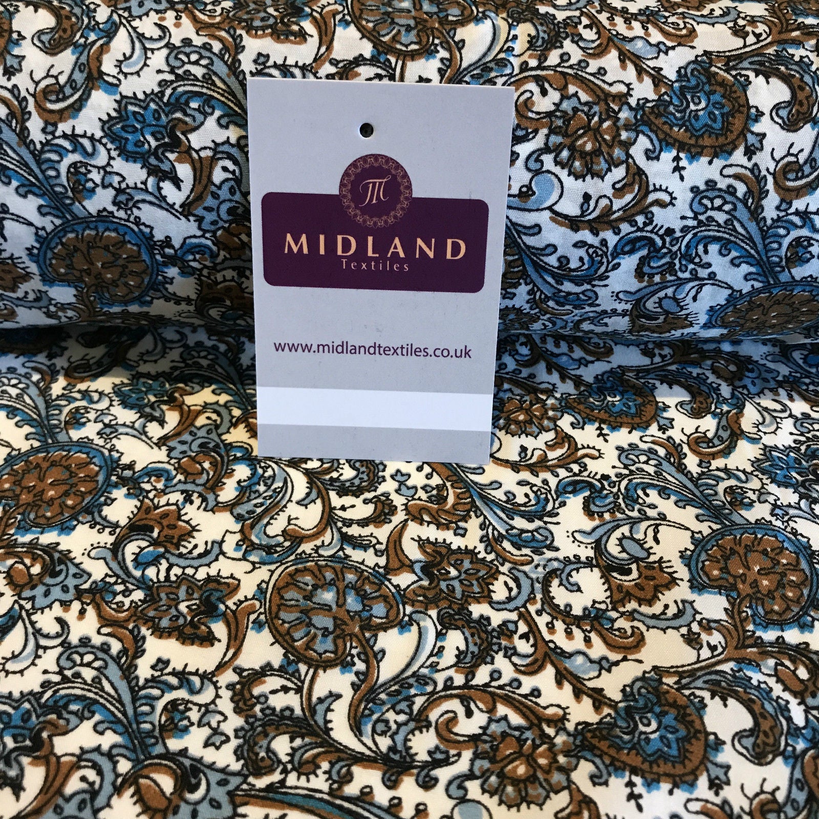 Vintage Regal Ornamental Poly Cotton Printed Dress Fabric 45" M29 MtexWidth - 45 inchesSample Size - approx 10cm x 10cmMaterial: 80% Polyester, 20% Cotton Colour: Navy Red 1 , Purple Lilac 2, Blue Mustard 3. Width: 45" Wide Pattern size: Weight: 120g/m²Use: dresses, tops,cushions, handbags, accessories, baby and children's wear and more. Manufacturing: Woven and Printed Textile finishing: PrintedFeel/Hanging:Certificates: NoneFrequently Asked QuestionsHow do I order more than 1m?Enter the number of metres required in the buy now quantity box, if there are notenough metres listed, email to see if we have the required balance – we usually do.Will multiple metres come in one continuous piece?Yes generally, but if you require otherwise then please let us know.Do you combine P&P (shipping & handling) for multiple purchases ?Yes, always.Do you take Orders / Credit card payments over the phone ?No. We accept PayPal only.Do you ship outside the UK ?Yes, please contact us for a price.While every care has been taken to ensure the accuracy of the colours depicted in our images, please be aware that due to monitor resolution, lighting, photo processing software and other factors it is almost impossible to represent colour to 100% accuracy.