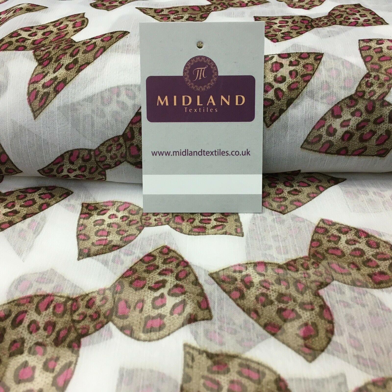 White Animal Bows Printed Crinkle Georgette Chiffon Fabric MK1090-4Width 58 inchesSample Size approx 10cm x 10cmFeel/Hanging: hangs wellCertificates: NoneFrequently Asked QuestionsHow do I order more than 1m?Enter the number of metres required in the buy now quantity box, if there are notenough metres listed, email to see if we have the required balance – we usually do.Will multiple metres come in one continuous piece?Yes generally, but if you require otherwise then please let us know.Do you combine P&P (shipping & handling) for multiple purchases ?Yes, always.Do you take Orders / Credit card payments over the phone ?No. We accept PayPal only.Do you ship outside the UK ?Yes, please contact us for a price.While every care has been taken to ensure the accuracy of the colours depicted in our images, please be aware that due to monitor resolution, lighting, photo processing software and other factors it is almost impossible to represent colour to 100% accuracy.